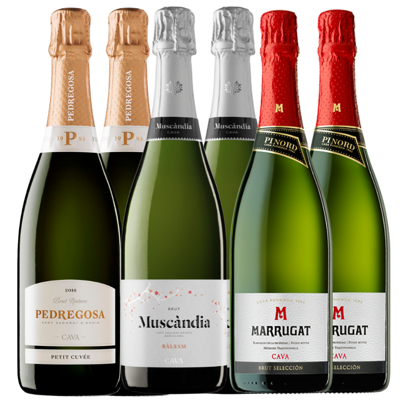 En aquest pack trobareu 2 ampolles de Muscàndia Bàlsam brut, un cava fresc, llaminer. Surt la máxima expressió de la fruita. Lleugerament dolç. 2 ampolles de Marrugat Brut, cava suau, sedós, fresc i viu. 2 ampolles de Petit Cuveé de Pedregosa, Cava alegre, envoltat d'una sensació de suavitat, sedositat i frescor. Perfecte per gaudir de les bombolles en qualsevol moment.