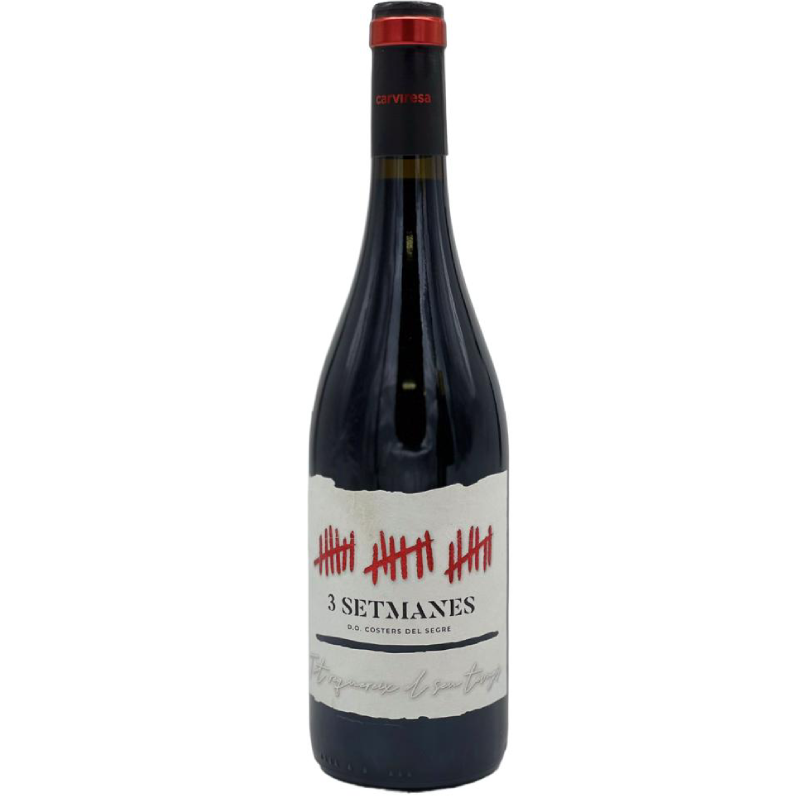 3 Setmanes Tinto vino elaborado con un 80% de Tempranillo y un 20% de Garnacha Tinta, procedente de los viñedos que la Bodega Carviresa tiene en Verdú, dentro de DO Costers del Segre, concretamente dentro de la subzona del Valle del Corb. Es un vino aromático, de entrada sedosa y golosa y de intensidad moderada.