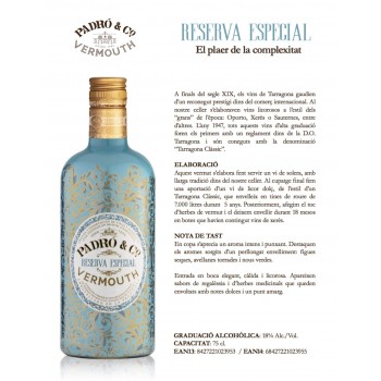 Este vermut Reserva Especial Tinto está elaborado a partir de un vino de solera, con larga tradición dentro de la bodega. Al coupage final se hace una aportación de un vino de licor dulce, del estilo de un Tarragona Clásico, que envejece en tinas de roble de 7.000 litros durante 5 años. Posteriormente, se añade el toque de hierbas aromáticas y se deja envejecer durante 18 meses en tinas de roble que habían contenido vinos de jerez.