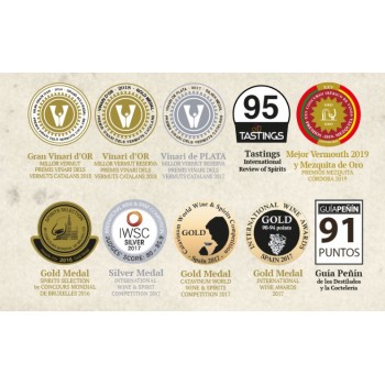 Este vermut Reserva Especial Tinto permanece durante 18 meses en barricas de roble que habían contenido vinos de jerez. La composición de las hierbas con que macera están delicadamente seleccionadas para obtener un vermut complejo y delicioso. Con aromas de higos secos, avellanas tostadas y nueces verdes, fruto de su envejecimiento, cuenta con una entrada elegante y cálida. Suma numerosos y reconocidos premios nacionales e internacionales